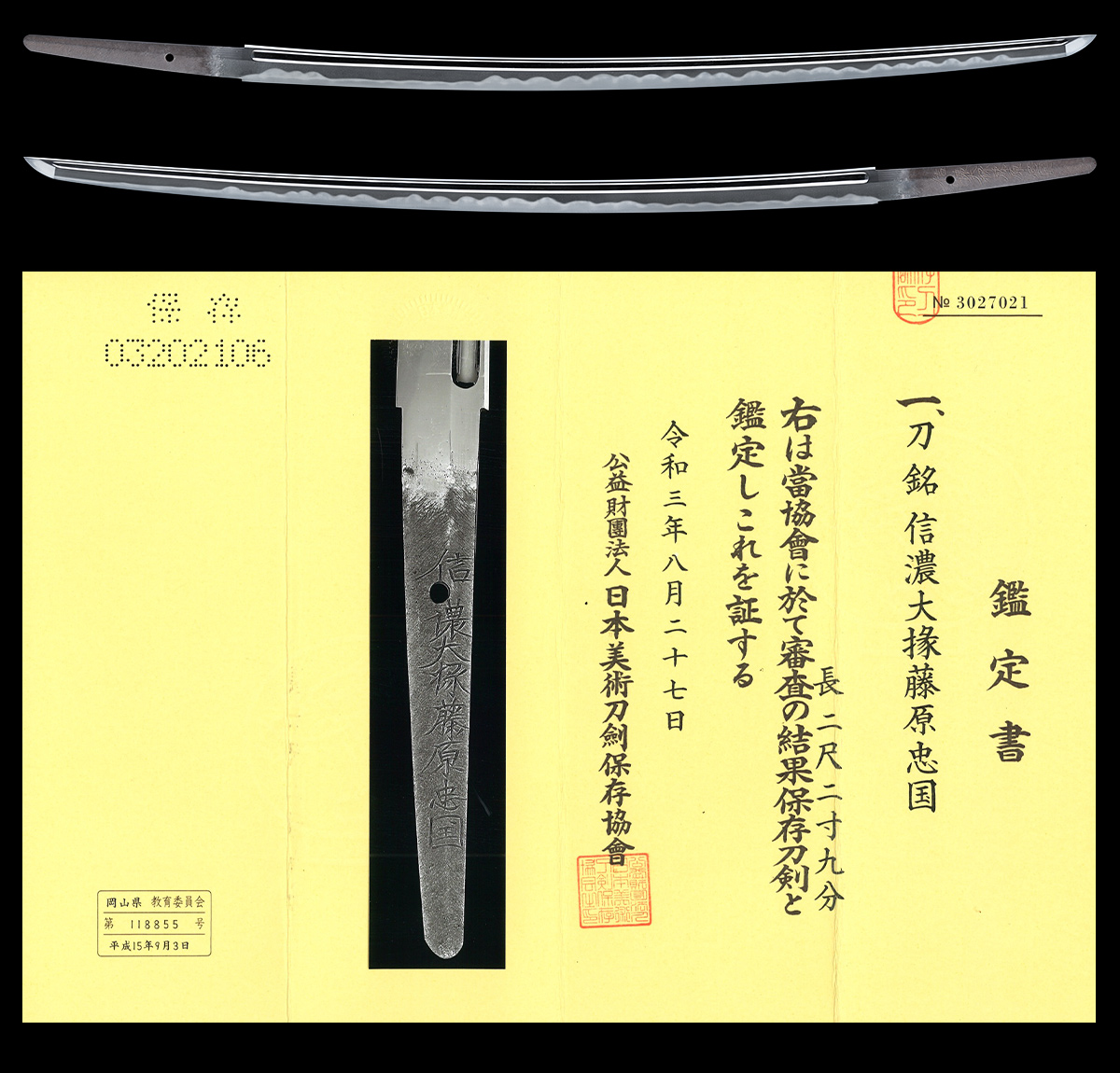 Katana [Shinano-Daijo Fujiwara Tadakuni (wazamono)][N.B.T.H.K] Hozon Token
