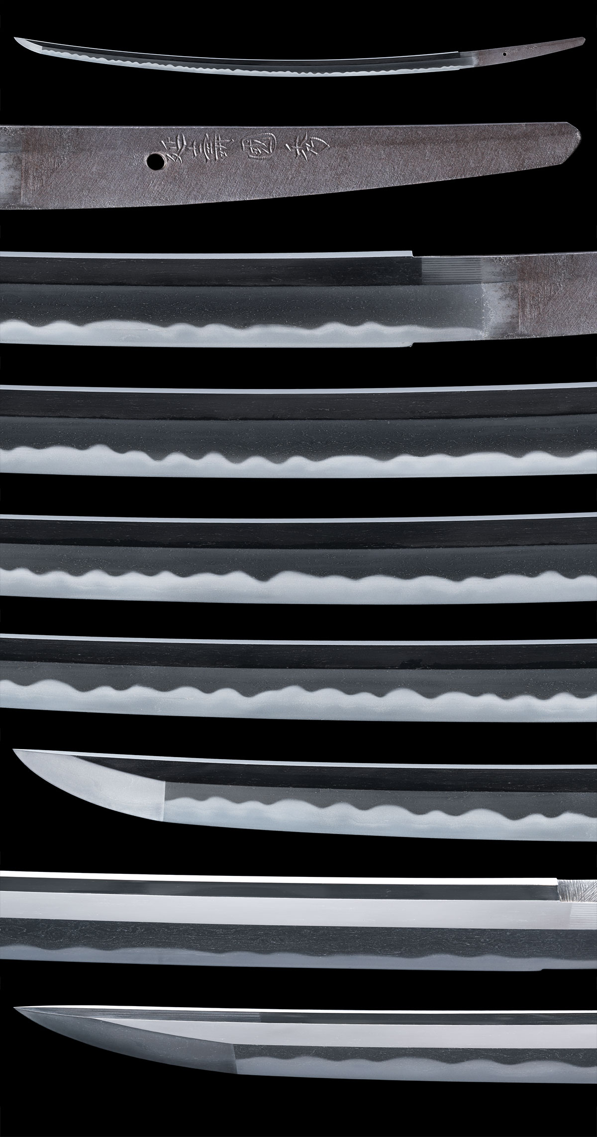 肥後国延寿派は、大和来派・弘村の子で、山城の来国行の孫の延寿太郎国村を祖とし、鎌倉末期から南北朝期に菊池一族の招きにより肥後菊池に移り、以後同国菊地郡隈府の地に於いて大いに繁栄しました。同田貫もその末裔であると云われています。本作国秀は本名を田中寿助といい、肥後細川藩の藩工で、延寿派の末裔です。初め薩摩の藩工、伯耆守正幸に学び、後に江戸に出て水心子正秀の門人となります。水心子正秀の高い技量を継承し、直刃においても延寿派の伝統的な作域が見て取れ上手です。「延寿国秀」「東肥國日出」等と銘を切ります。