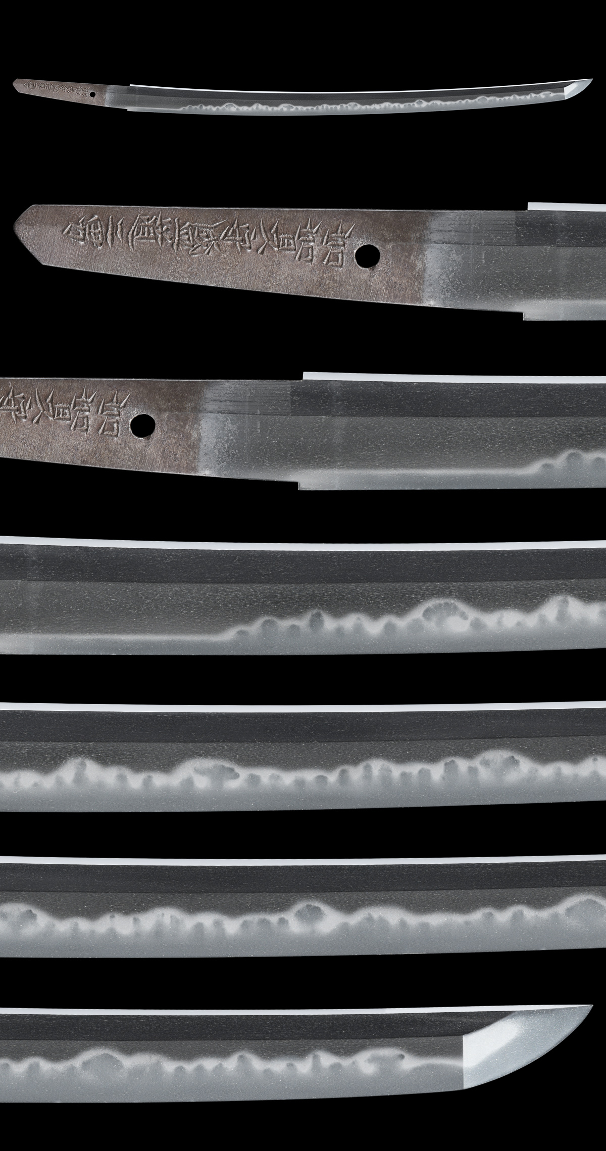 越前守源定道は、江戸時代中期 寛文~天和頃を活躍期とする刀工で、生国は美濃国関、尾張国名古屋に住して鍛刀しました。京の伊賀守金道門と伝え、「三品越前守源定道」と銘する作も残っています。脇差の銘文より江戸時代初期 寛永頃の美濃国の刀工、加賀守盛道の二男であったことが分かります。