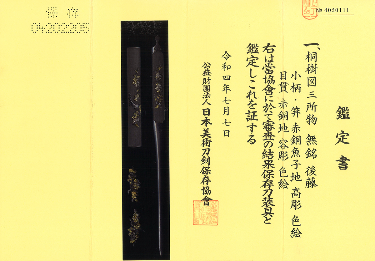 Kozuka Kougai Menuki [Mumei Goto Toju-zu][N.B.T.H.K] Hozon Tosogu