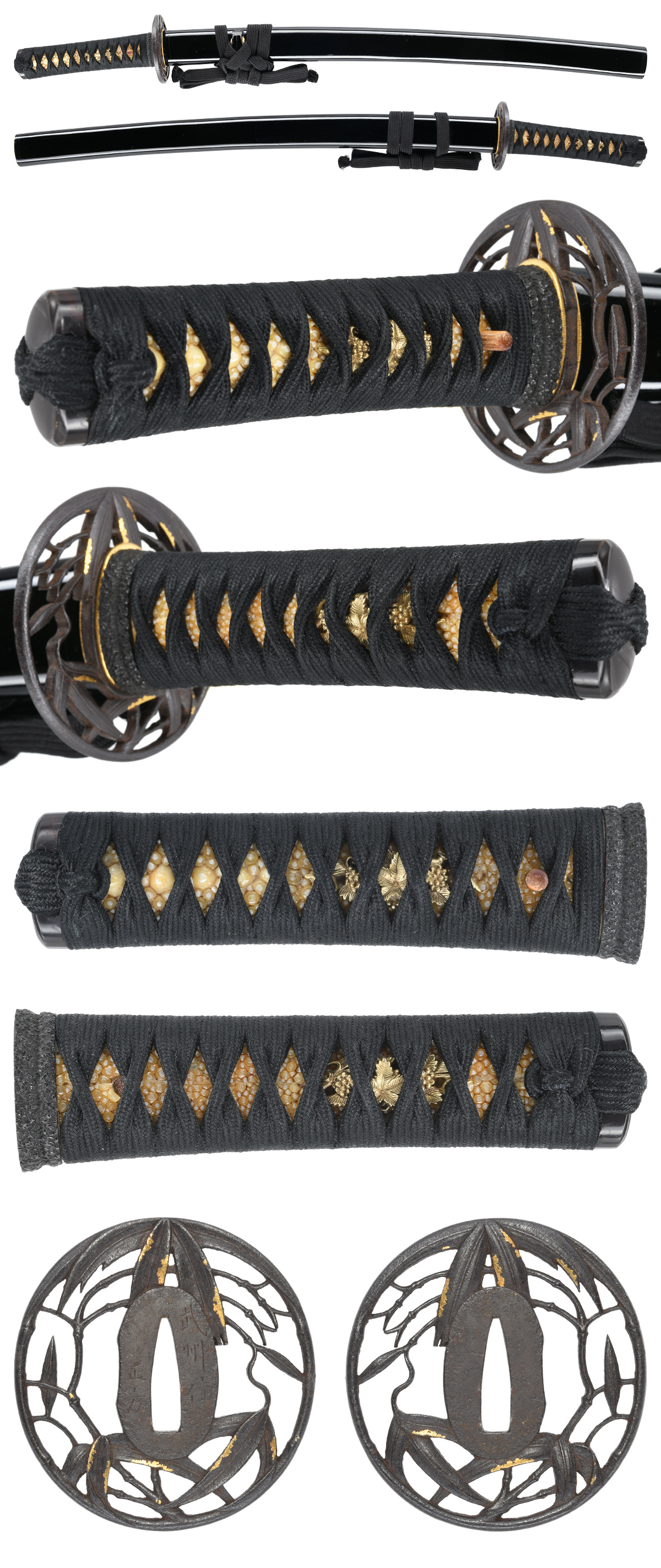 本刀体配は、刃長が一尺四寸強。地鉄は、良く練れて詰んだ小板目肌に杢目交じり、地沸よく付き、映りが立ちます。刃文は互の目に尖り刃、小互の目、丁子刃などを交え、一部逆がかり、匂口柔らかに明るく冴えます。帽子はそのまま乱れこんで先焼詰めごころとなります。室町後期の備州長船重光に鑑せられた一作。小沸付き、よく冴えた上品な乱れ刃を呈す優品です。白鞘、金着一重はばき、黒蝋色塗鞘脇差拵、保存刀剣鑑定書。※写真の通りで、ヒケ傷、小錆がございますが、鑑賞に差し障るものではございません。