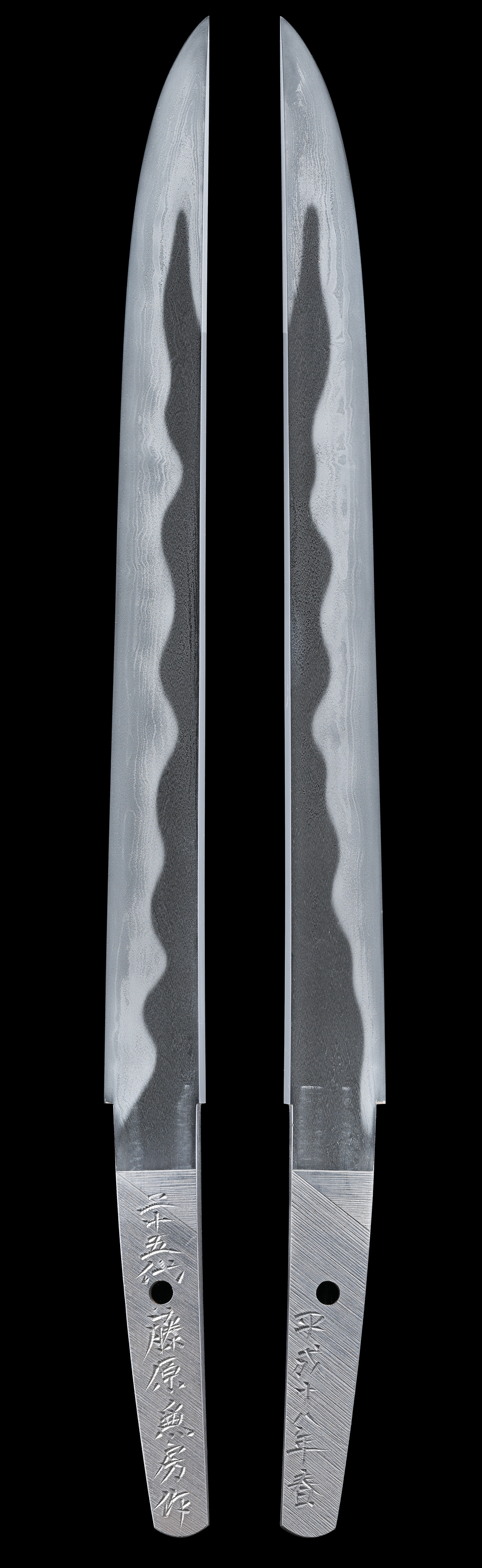 二十五代藤原兼房作。本名は加藤賀津雄。昭和三十二年、室町時代より続く刀匠・藤原兼房家に生まれます。岐阜県関市小瀬在住。昭和五十年、人間国宝匠・月山貞一に入門、初銘を貞房といいます。昭和五十七年、文化庁認定の刀匠となります。昭和五十八年より、父二十四代藤原兼房に師事し、以後、薫山賞はじめ、優秀賞、努力賞他、多くの受賞を果たします。昭和五十九年、二十五代藤原兼房日本刀鍛錬道場を開設。二十五代藤原兼房を襲名しました。明治神宮、熱田神宮、靖国神社などに刀を奉納。また天皇家の守短刀を御造りするなど、活発にご活躍中の関鍛冶代表工の御一人です。全日本刀匠会元常務理事。関伝技術保存会元副会長、関伝刀匠会元会長。