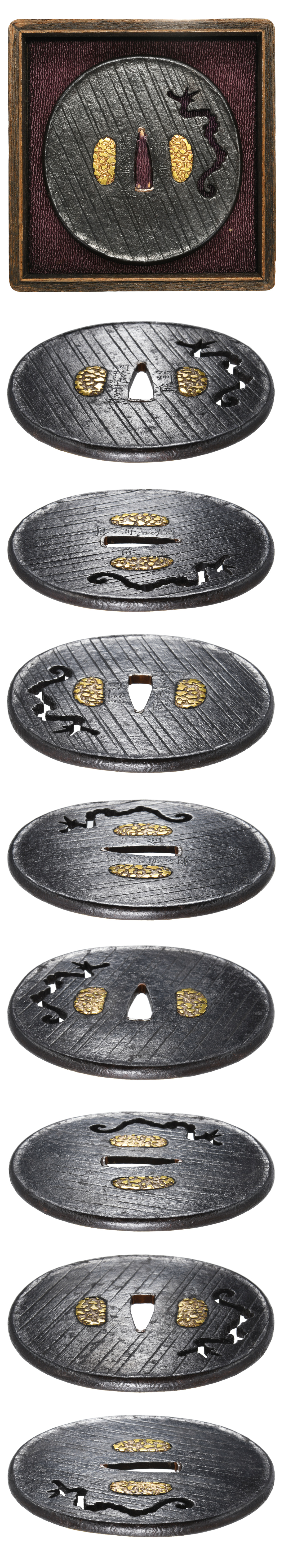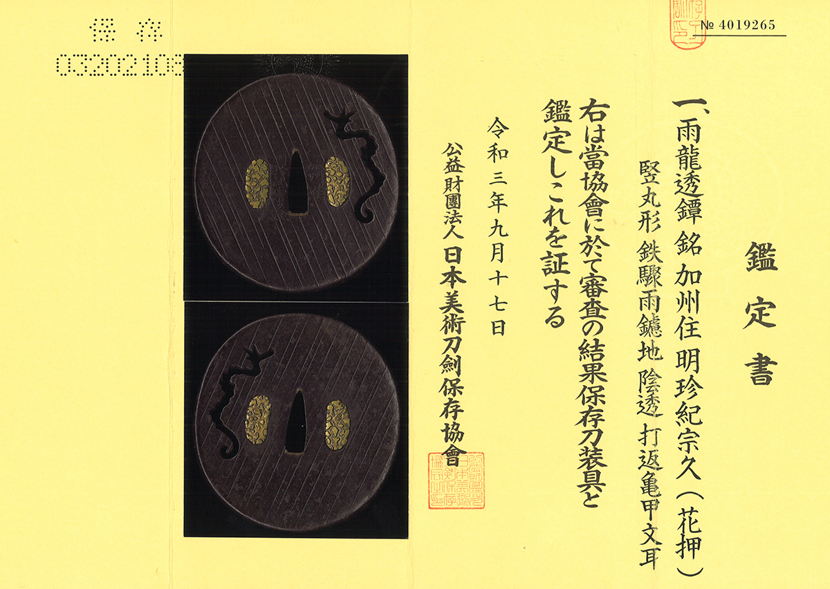 Tsuba [Kashu-ju Myochin-Ki-Munehisa Amaryu-sukashi-Tsuba][N.B.T.H.K] Hozon Tosogu