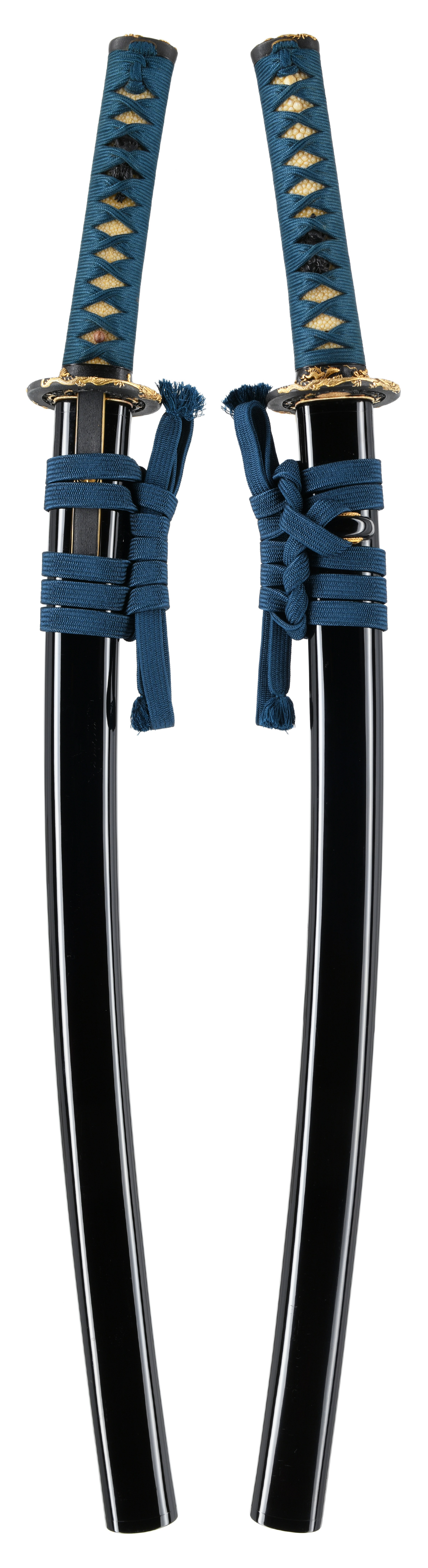 本刀体配は、刃長が一尺六寸九分、身幅確りとして、重ねやや薄く、腰反り頃合に利き、中切っ先となる刀姿です。鍛は、よく練れた小板目肌が綺麗に詰んで、地沸付き、細かに地景が入ります。焼刃は中互の目と小湾れ刃に、長い丁子足繁く入り、処々葉が交じり、砂流し、金筋目立って掛かります。匂深く敷いて、小沸よく付き、匂口明るく冴えます。帽子は浅く乱れて先尖り、掃きかけて深く返ります。茎は生ぶ、筋違鑢目で、表に長銘を切ります。本作は肥前忠吉正系と並び、抜群の力量を誇る正廣家二代 河内守正廣の御刀です。健全な姿、地肌破綻なく、中互の目と小湾れ刃文に丁子足や葉、砂流し・金筋が掛かるなどして盛んに働き、大変見応えのある名品であります。白鞘、金着二重はばき、黒蝋色塗鞘脇差拵、特別保存刀剣鑑定書。