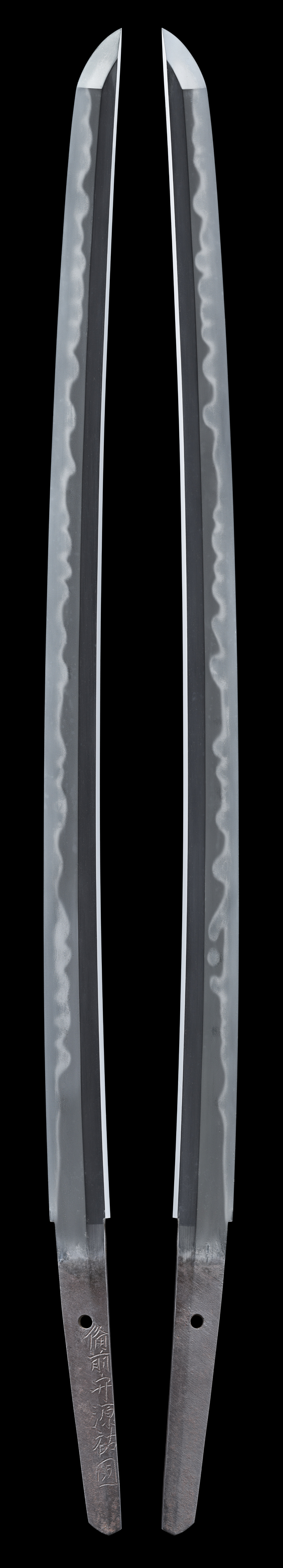 備前守源祐国は、江戸中期 寛文頃を活躍期とする紀州石堂派の刀工で、後に摂津国へ移住します。備前伝の丁子乱れ、濤瀾刃など華やかな作風で、直刃も焼きます。斬れ味にも定評があり、業物に列せられます。「紀伊国祐国」、「花房備前守祐国」などと銘を切ります。